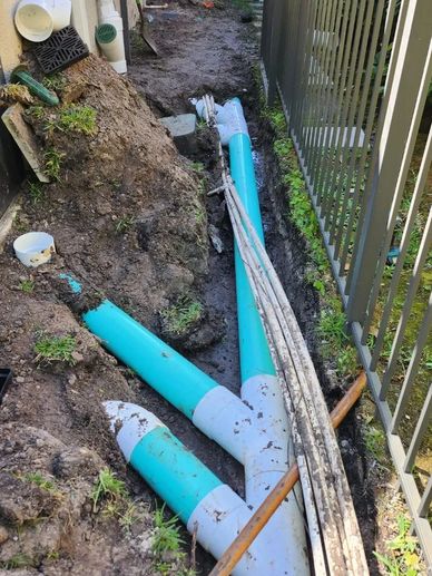 Underground drainage piping is pitched. Gravity drains water to a lower elevation area so water can drain to the surface of the ground through a mitered surface drain fitting. Also used for draining foundation French drain water, underground sump pump drainpipes, and other drainage systems.